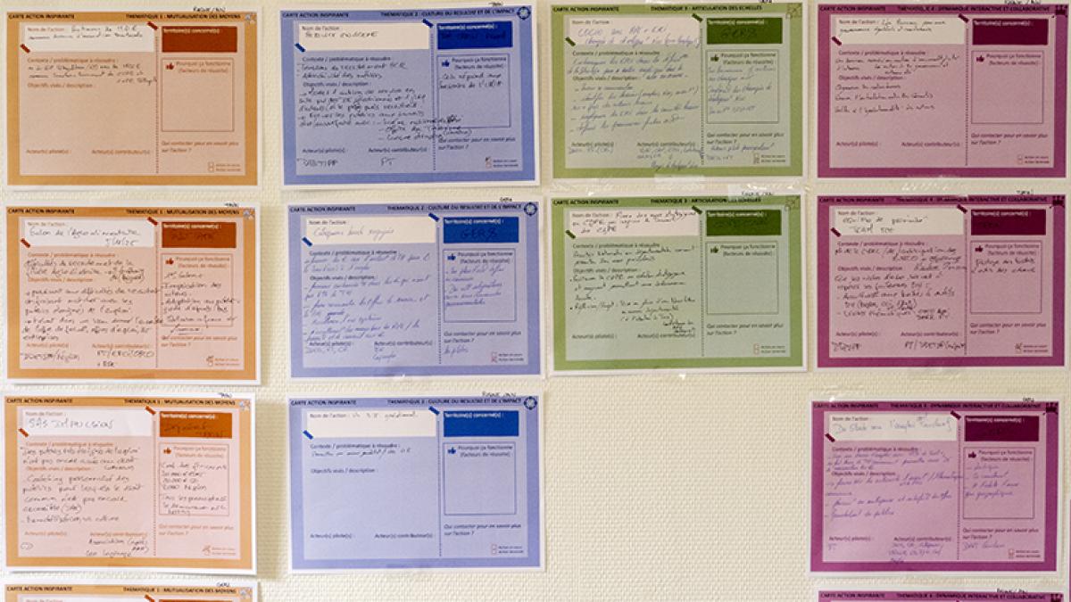 Publié le 13/10/2025 Autres ressources Environnement professionnel Le réseau pour l'emploi dynamisé Comment ancrer et dynamiser les comités territoriaux pour l’emploi ? C’est ce sur quoi se sont penchés les participants à la Master Class qui s’est déroulée les 2 et 3 octobre derniers sur le site de l’INTEFP. Organisée par la DGEFP, France Travail et l’INTEFP, ces journées ont réuni près d’une quarantaine de directrices et directeurs de Conseils départementaux, de France Travail et des DDETS-PP. Le souhait a été que chaque territoire participant soit au maximum représenté par ces trois acteurs pour à la fois partir d’une même expérience terrain et dessiner conjointement des pistes de réflexion et d’actions. Le travail en interinstitutionnel facilite la mise en place d’actions opérationnelles à moyen et long termes. ©INTEFP Des ateliers pour cocréer De façon générale, les échanges ont porté sur les pratiques et ressources inspirantes, sur des pistes d’action concrètes et opérationnelles, sur le renforcement de la coopération entre les différents acteurs du travail sur le terrain permettant d’agir concrètement sur l’emploi d’un territoire.Trois ateliers ont permis d’avancer en ce sens et de préparer des livrables utilisables rapidement.Très participative, claire et instructive, cette master class a été appréciée et les participants ont souligné l’intérêt de ces temps d’échange dédiés. Acteurs d’un même territoire Co-présidés par l’État et les collectivités territoriales, les comités territoriaux pour l’emploi sont directement issus de la loi pour le plein emploi de décembre 2023 qui œuvre pour améliorer l’accompagnement des demandeurs d’emploi et des entreprises, en visant des actions collectives et coordonnées. Le nouveau réseau pour l’emploi (RPE) s’emploie particulièrement à structurer la coopération entre les acteurs d’un même territoire, en matière d’emploi, de formation et d’insertion professionnelle.Les comités territoriaux mettent en œuvre les actions prioritaires définies en fonction des besoins spécifiques de chaque territoire. Retour en images Fermer Retour en images
